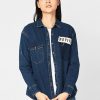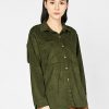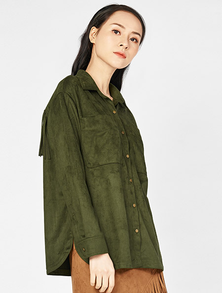 • Áo sơ mi nữ da lộn, dài tay, cổ đức, túi vuông ốp
